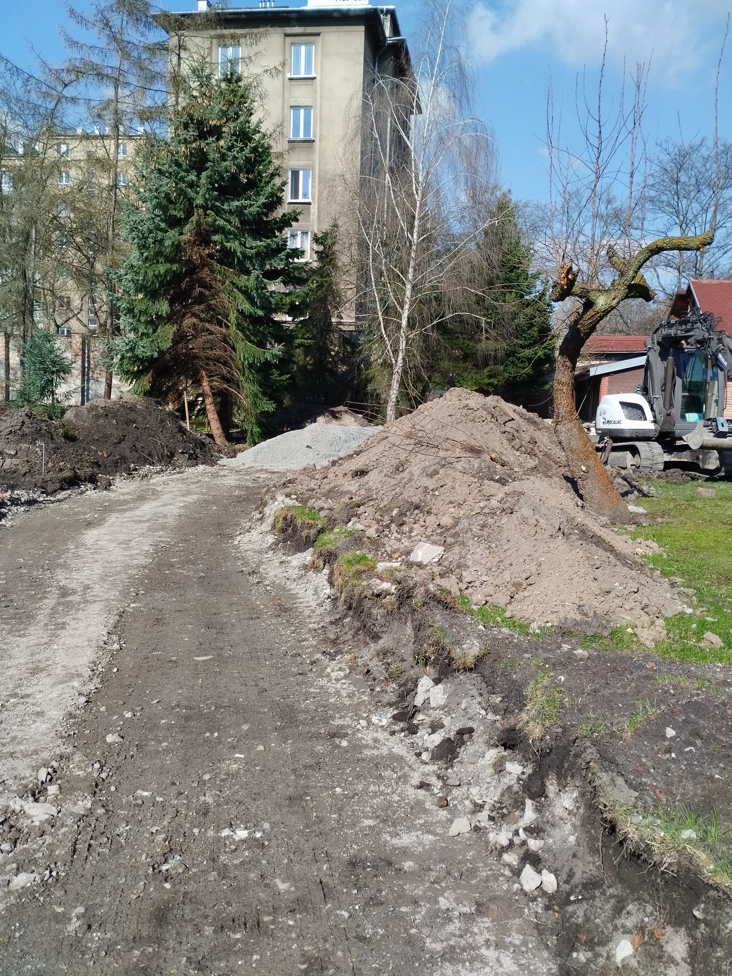 Kolejny odcinek drogi już na terenie klauzury jest stopniowo utwardzany. Tutaj wjeżdżają samochody dostawcze i służby medyczne. Przypomnimy tylko, że do tej pory nie było w tym miejscu nic, poza zieloną murawą. Teraz sytuacja zmieni się w sposób znaczący. W dużej mierze dzięki Waszej życzliwej pomocy. Dziękujemy, że razem z nami dbacie o to szczególne miejsce modlitwy.